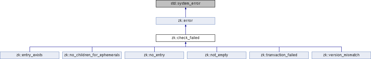 Inheritance diagram for zk::check_failed:Public Member Functions | |