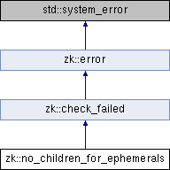 Inheritance diagram for zk::no_children_for_ephemerals:Additional Inherited Members | |